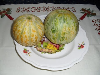 Meloa Ananás (ver a terceira imagem). Eu sabia que existiam várias espécies de Ananás (melões/meloas) - desconhecia era esta...