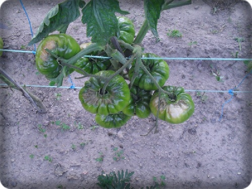 Podridão apical para já só em dois tomates, e os dois da mesma espécie (Hawaïan Pineapple) e do mesmo pé (tenho 2 pés na horta).